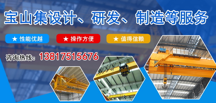 上海寶山起重機械有限公司主要從事軌道式集裝箱門式起重機,廠房,單梁橋式起重機、雙梁橋式起重機、門式起重機、輕小型起重機、歐式起重機、及起重機的設計、研發、制造、鋼結構、廠房銷售。